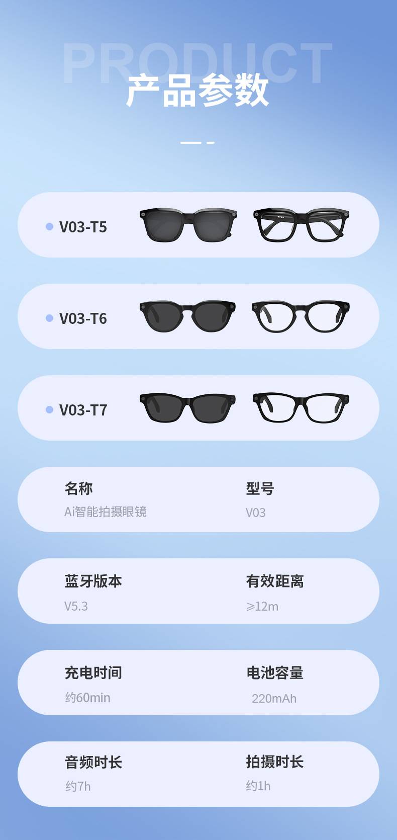 V03-T5AI拍照眼镜800万摄像头高清录音录像识物翻译HeyCyan