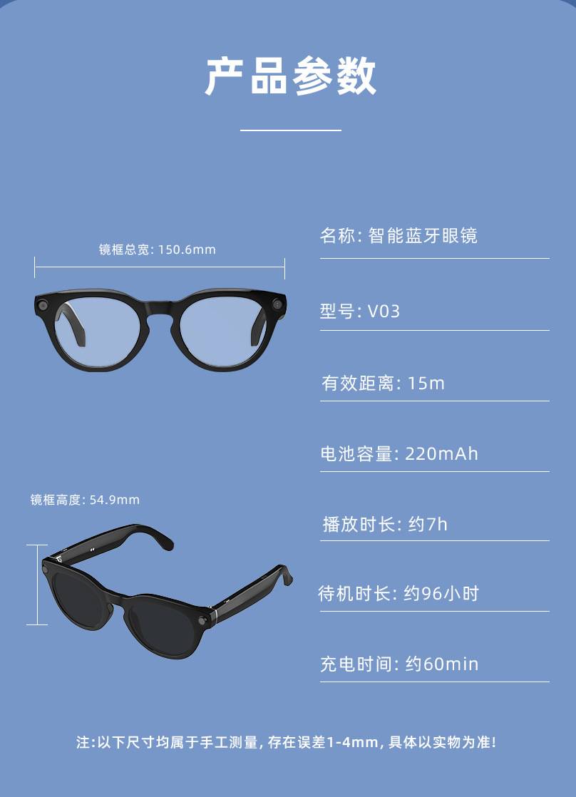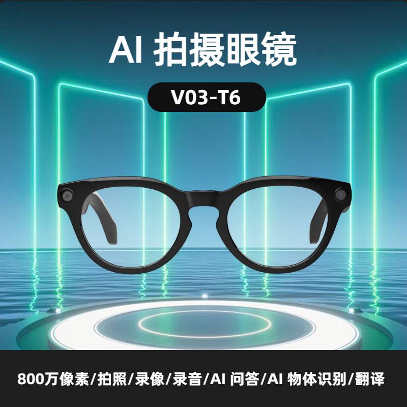 V03-T6智能蓝牙通话眼镜800万像素可AI录像拍照黑科技翻译跨境
