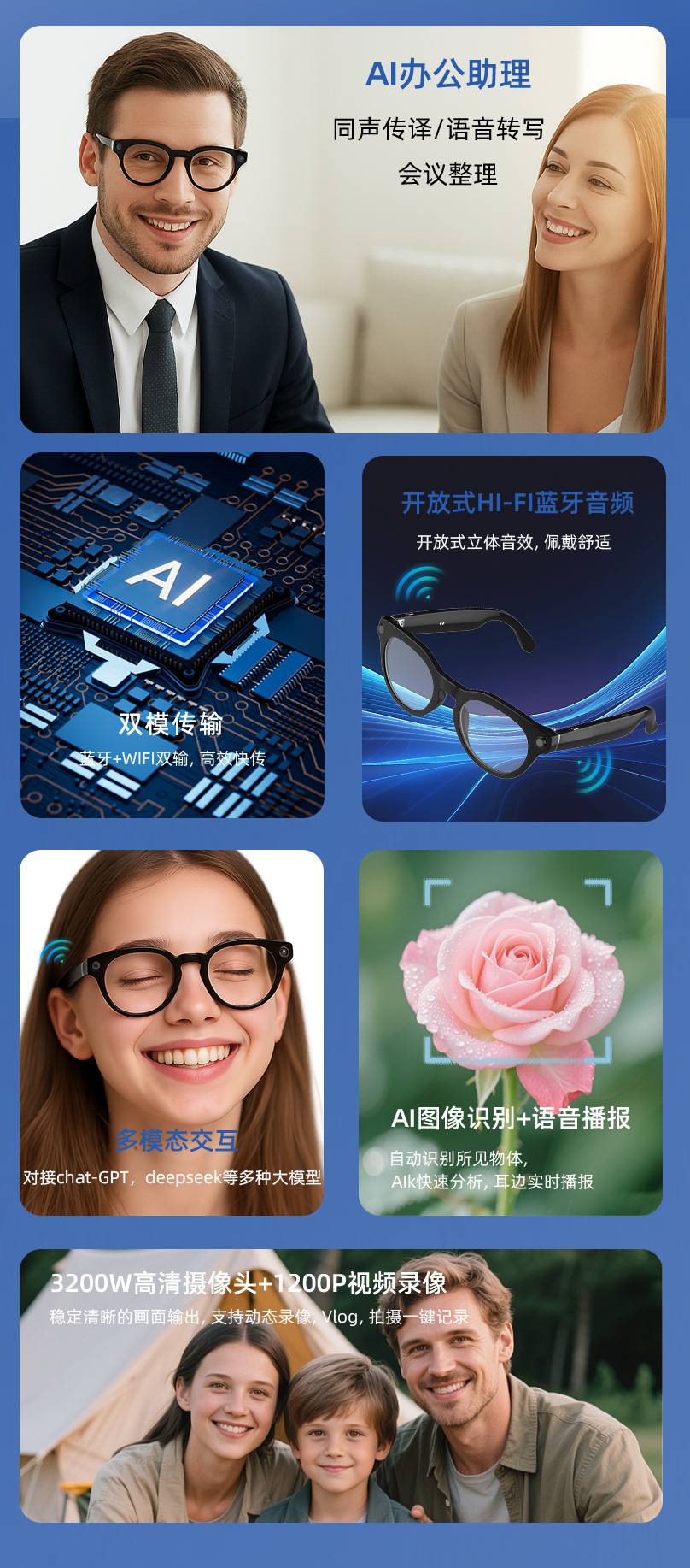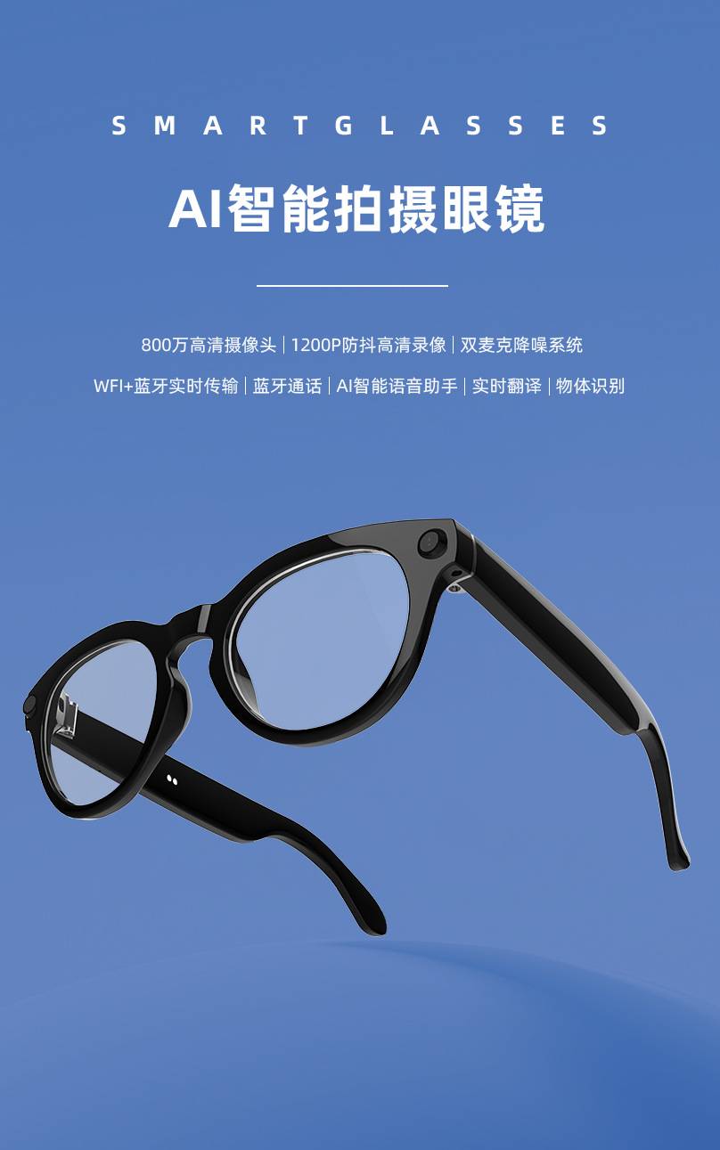 AI智能眼镜黑科技翻译识别拍照视频录制多功能