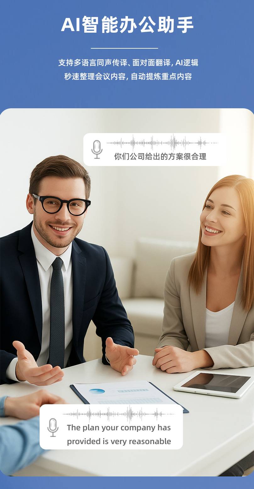 AI智能翻译眼镜耳机同声传译全球多国语言实时视频翻译会议记录