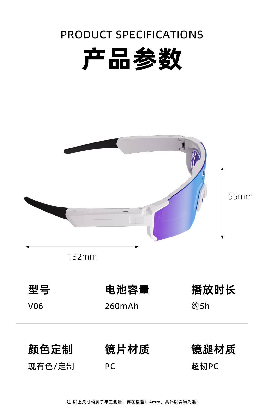 V03-T6智能蓝牙通话眼镜800万像素可AI录像拍照黑科技翻译跨境