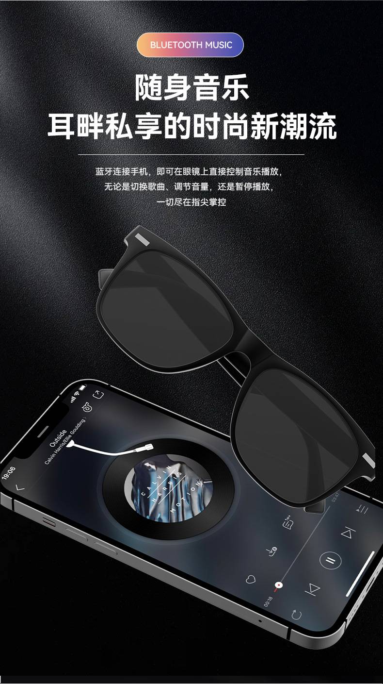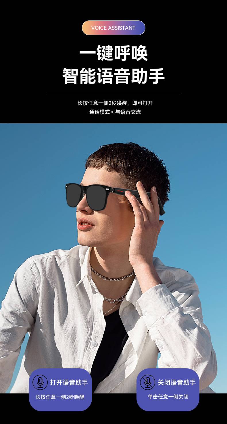 新款智能蓝牙眼镜双耳触摸控制听歌遥控拍照语音唤醒墨镜平光镜