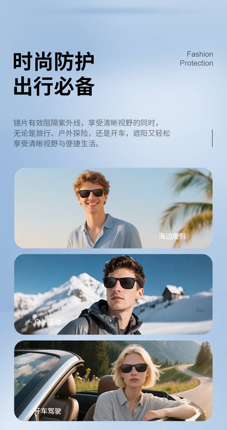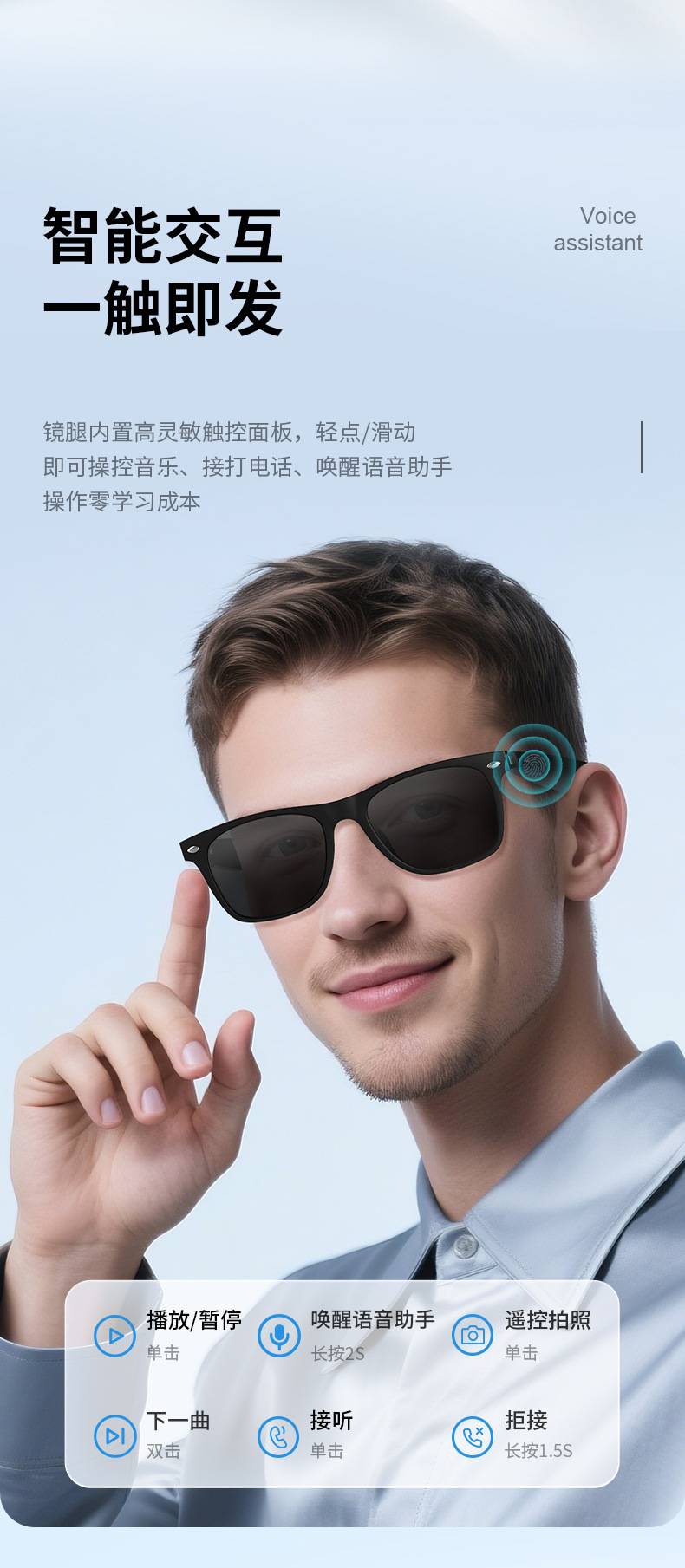 新款智能蓝牙眼镜双耳触摸控制听歌遥控拍照语音唤醒墨镜平光镜