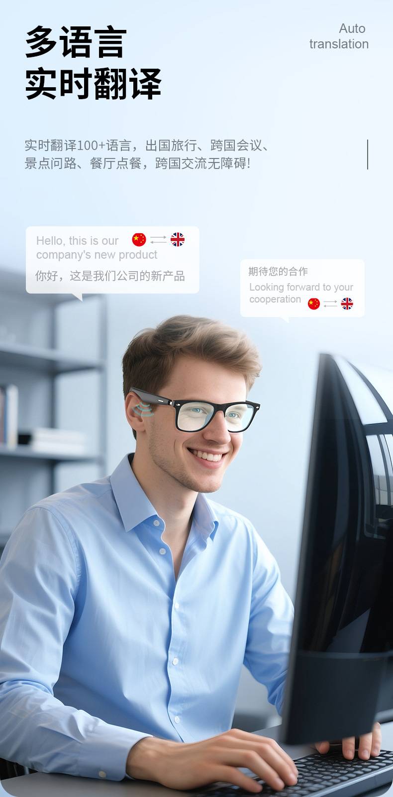 AI智能翻译眼镜耳机同声传译全球多国语言实时视频翻译会议记录