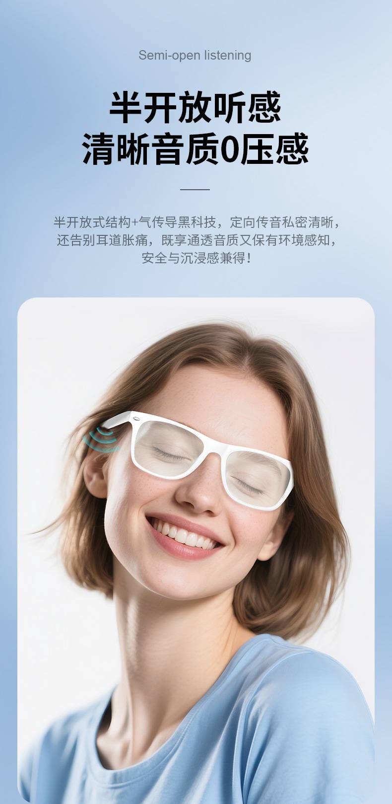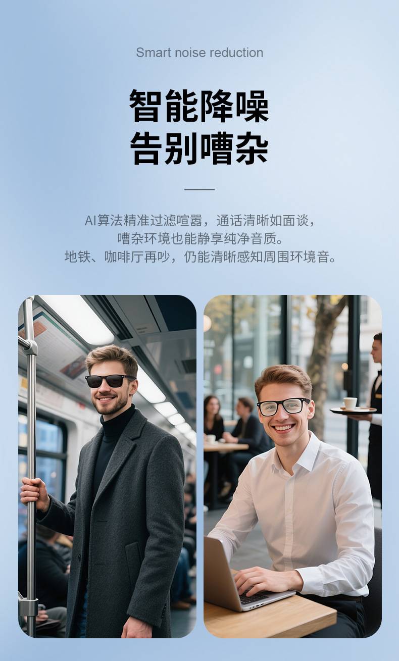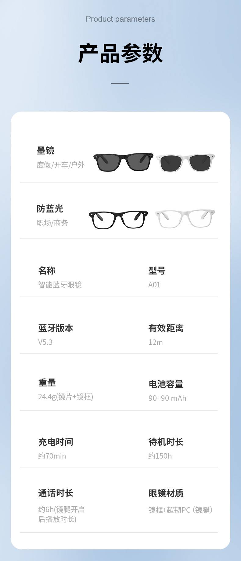 新款智能蓝牙眼镜A01眼镜多功能AI实时翻译耳机通话听歌智能眼镜