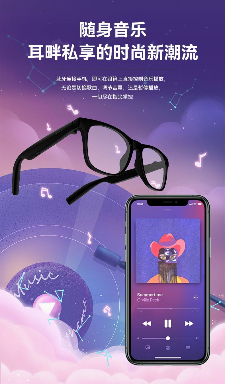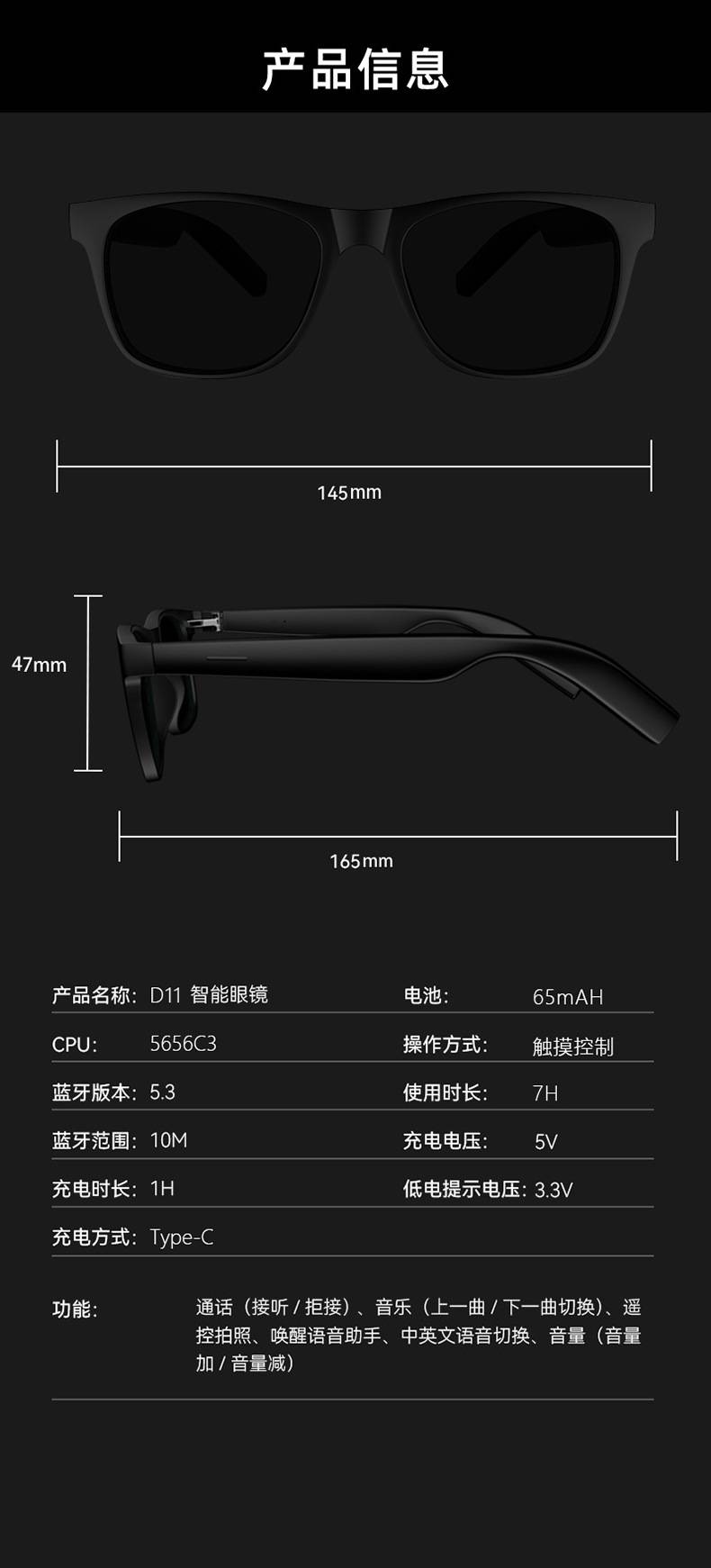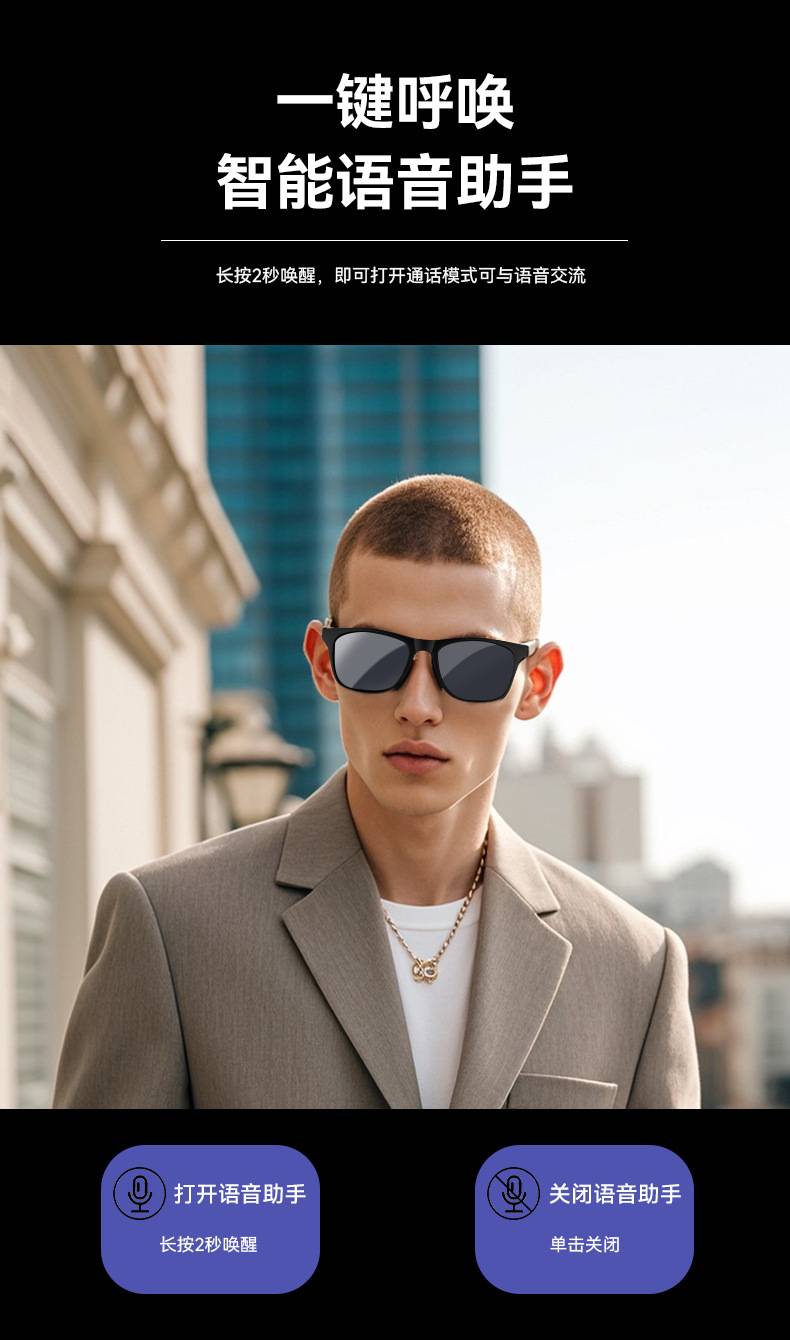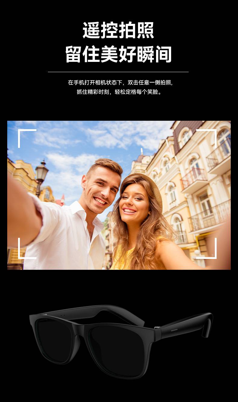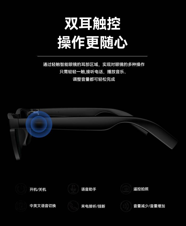 新款智能蓝牙眼镜双耳触摸控制听歌遥控拍照语音唤醒墨镜平光镜