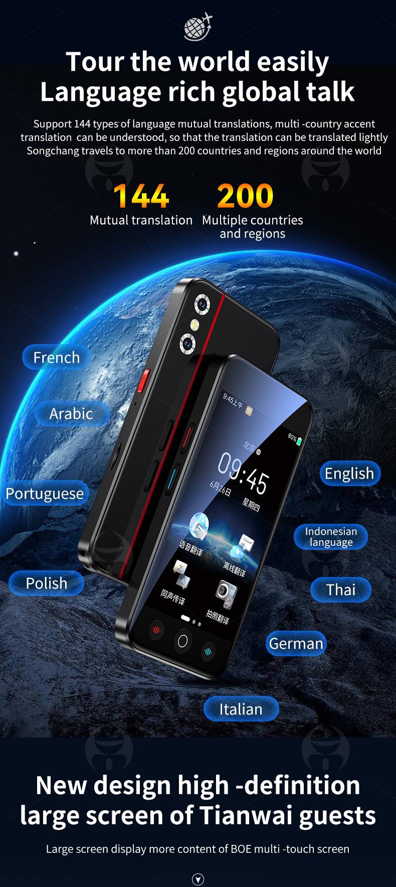Global intelligent translation machine for overseas travel, photography, multiple languages, real-time two-way large scr