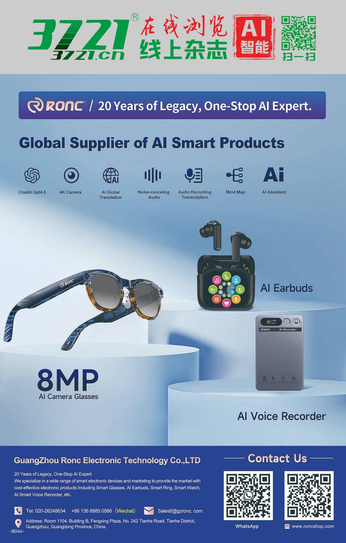 主营:AI相机眼镜AI耳机AI语音记录器,