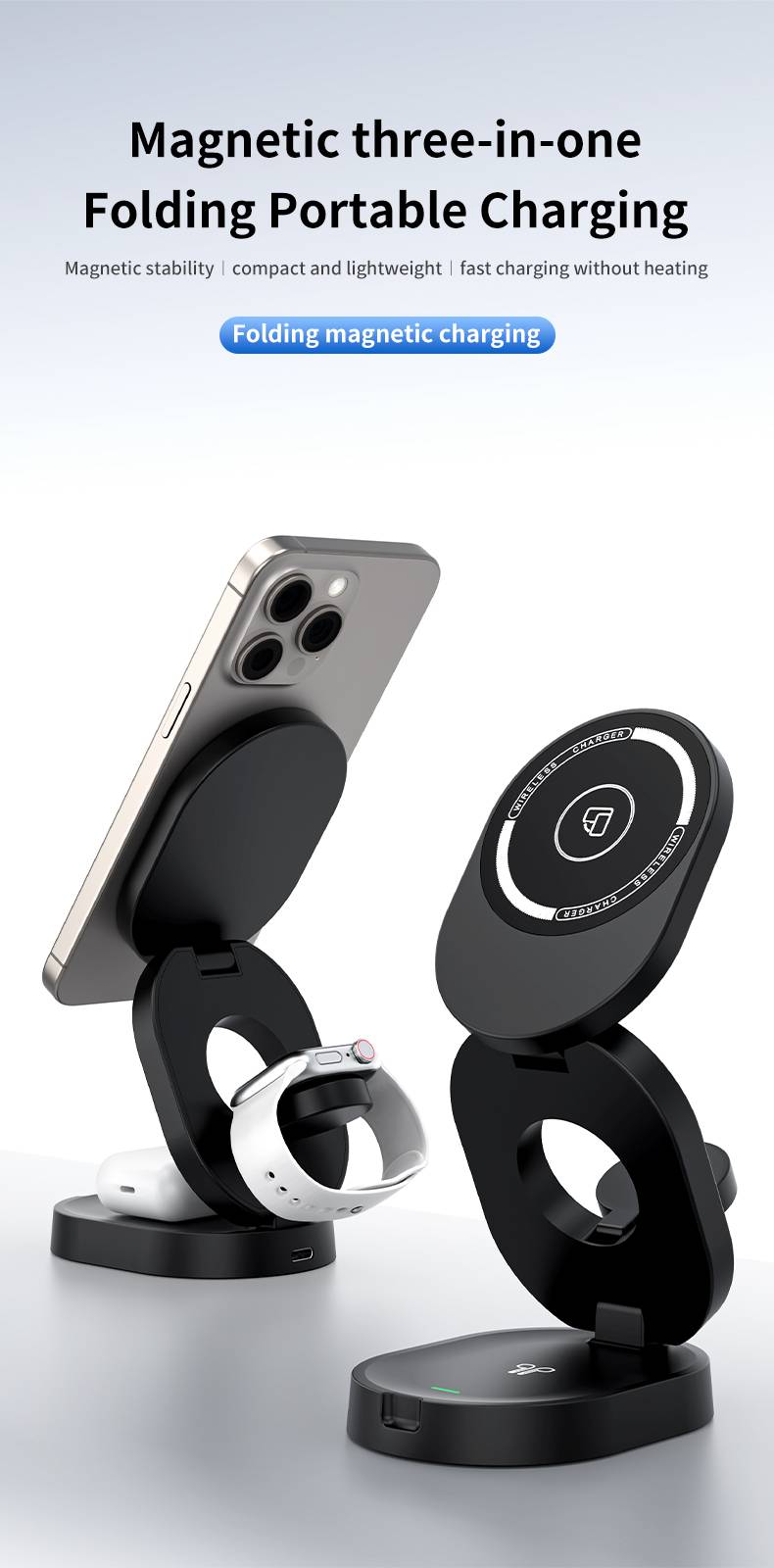 Three fold portable three in one wireless charger H66