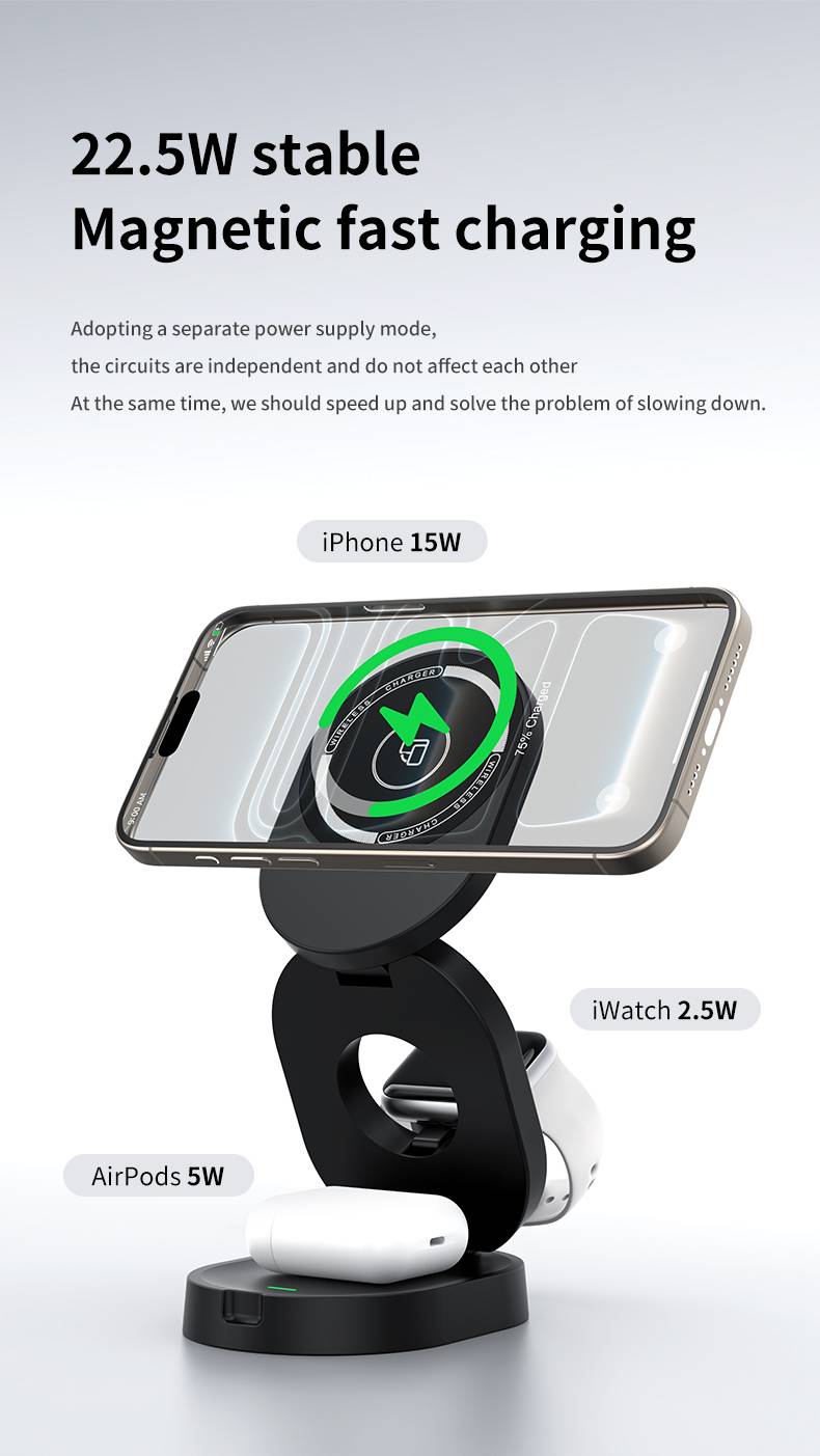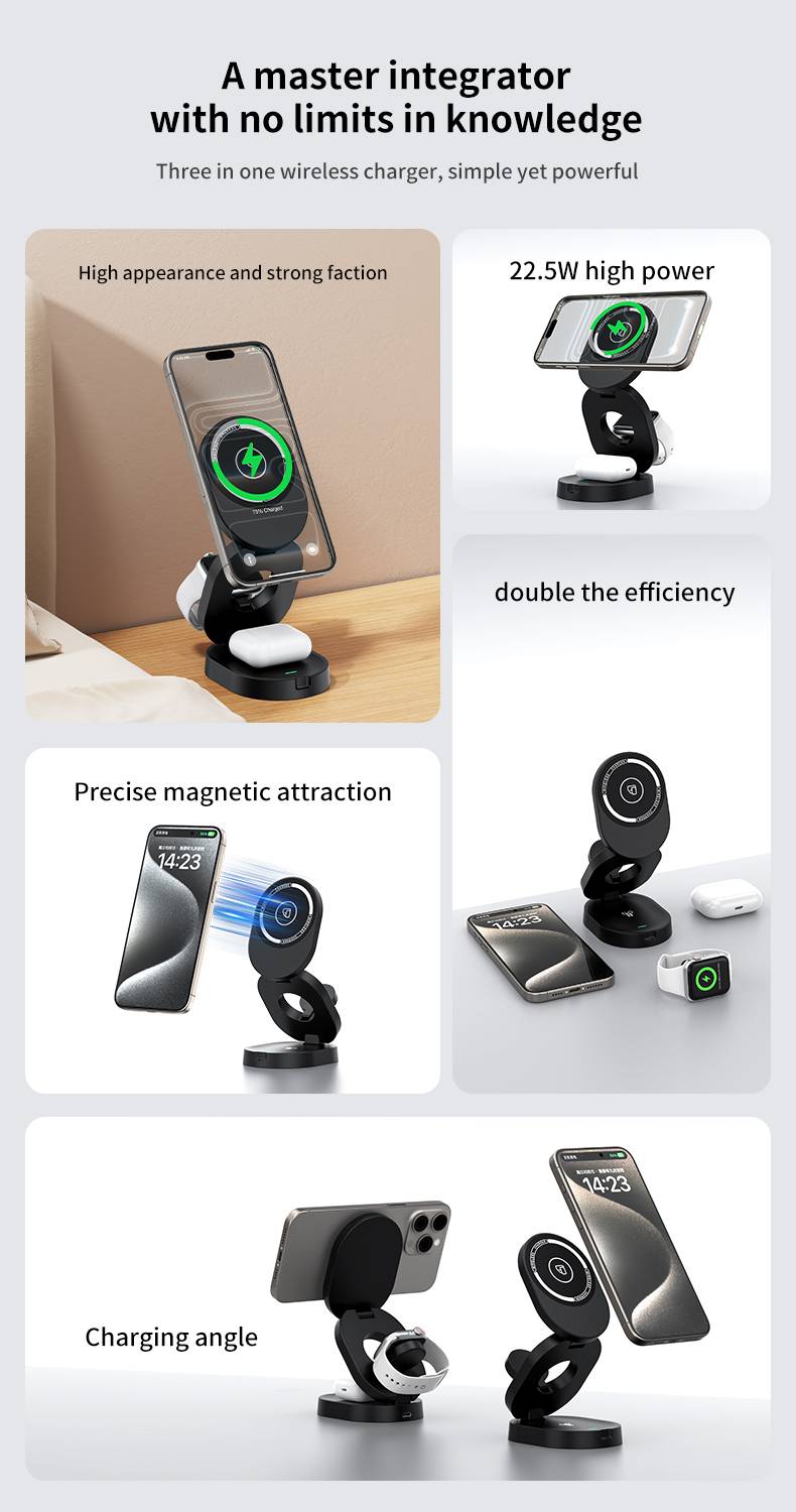 Foldable three in one wireless charger H22