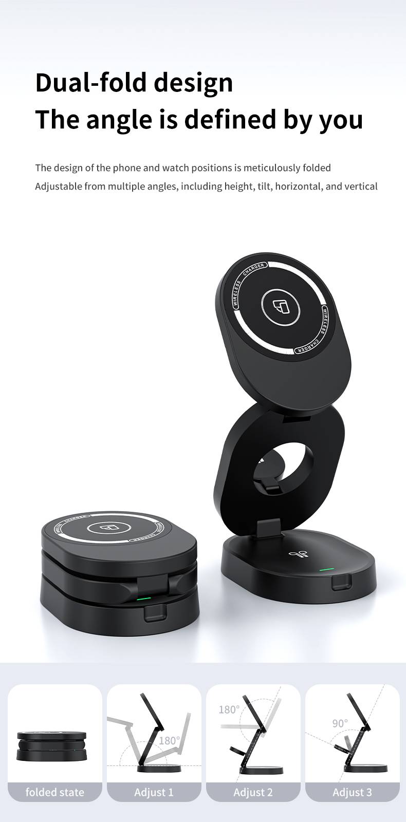 Desktop three in one wireless charging and folding stand H67