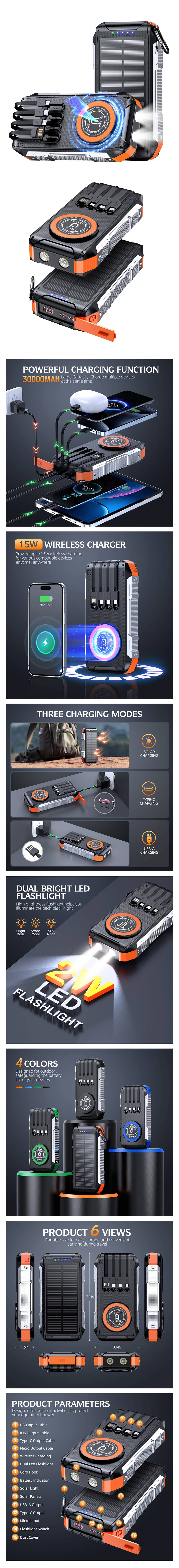 Equipped with fast charging cable, solar power bank, wireless charging, mobile power bank