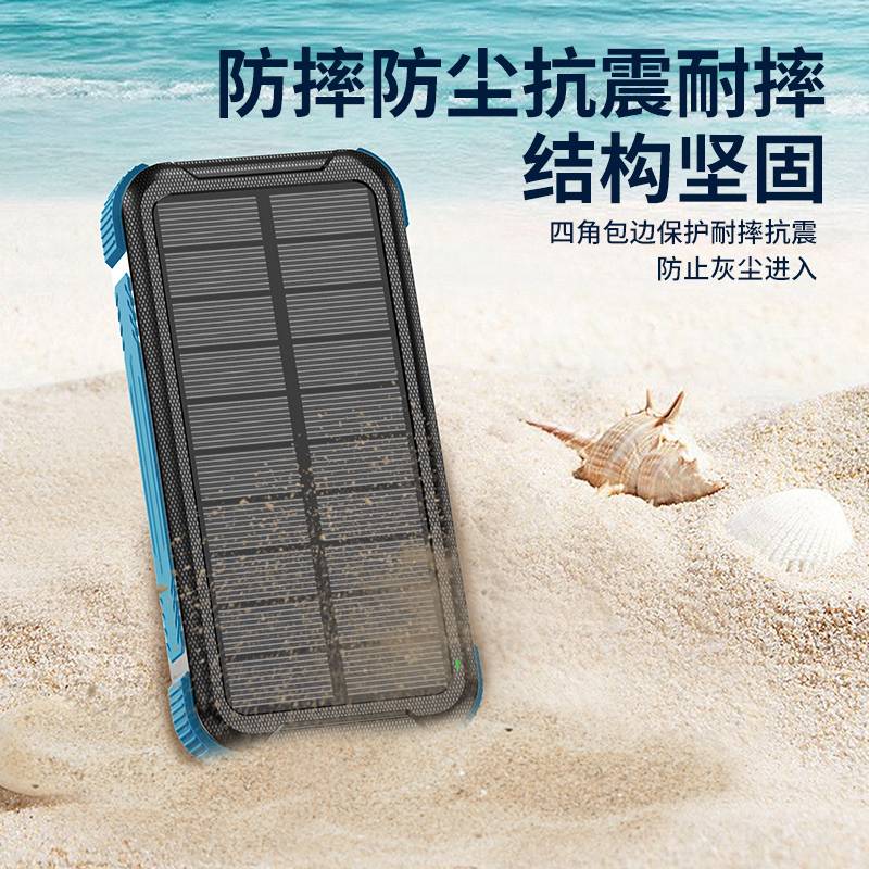 Outdoor waterproof solar power bank, large capacity compass, portable power bank