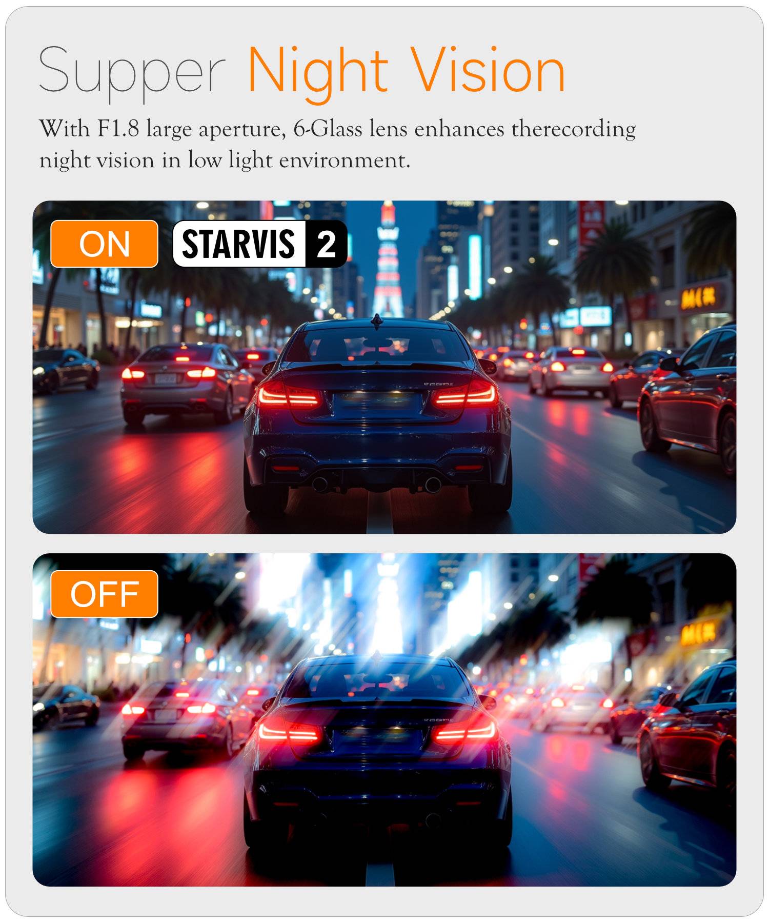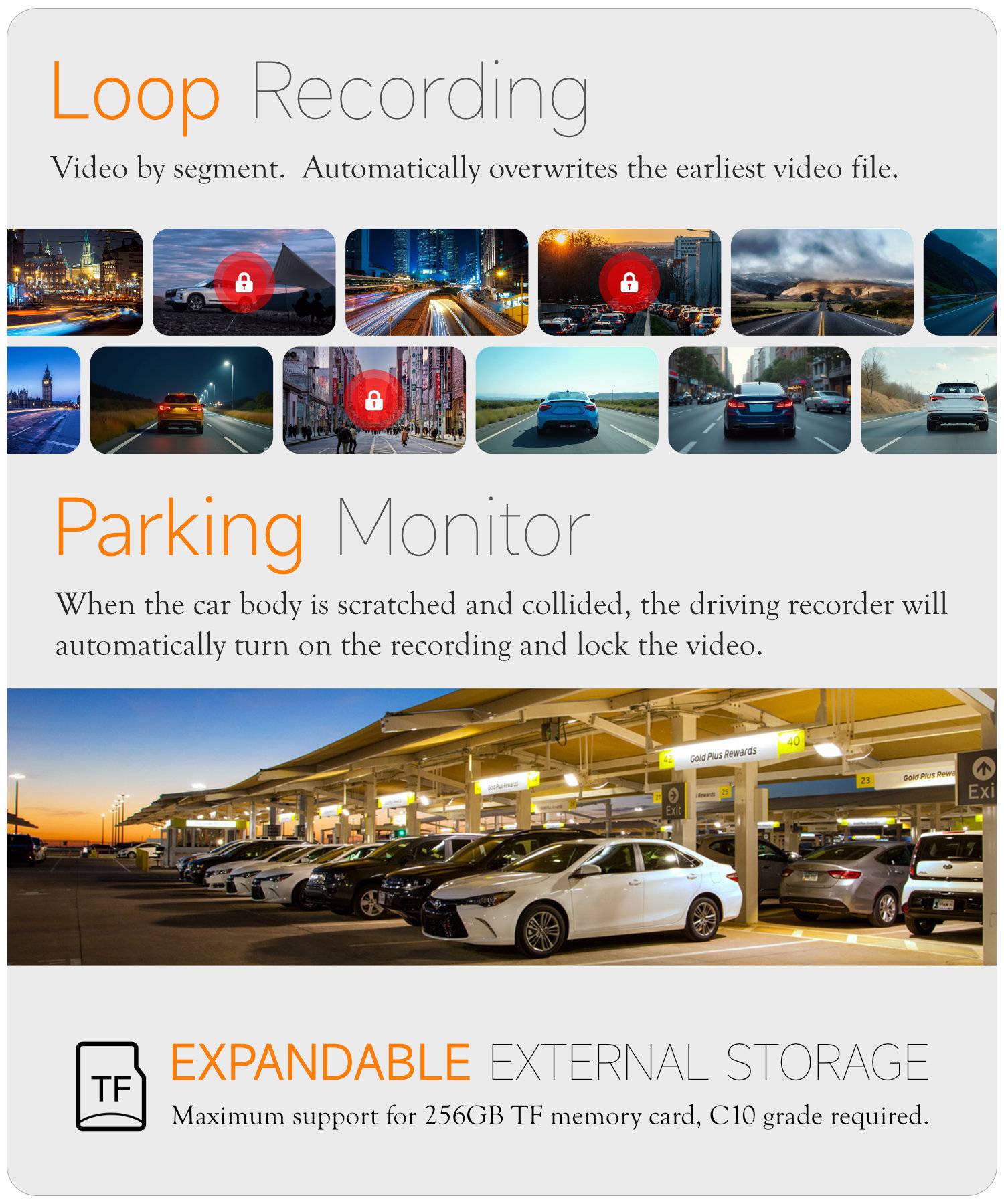 A313 Parking Surveillance Dash Cam with HD Night Vision, Wireless WiFi, and Dual Front/Front Cameras