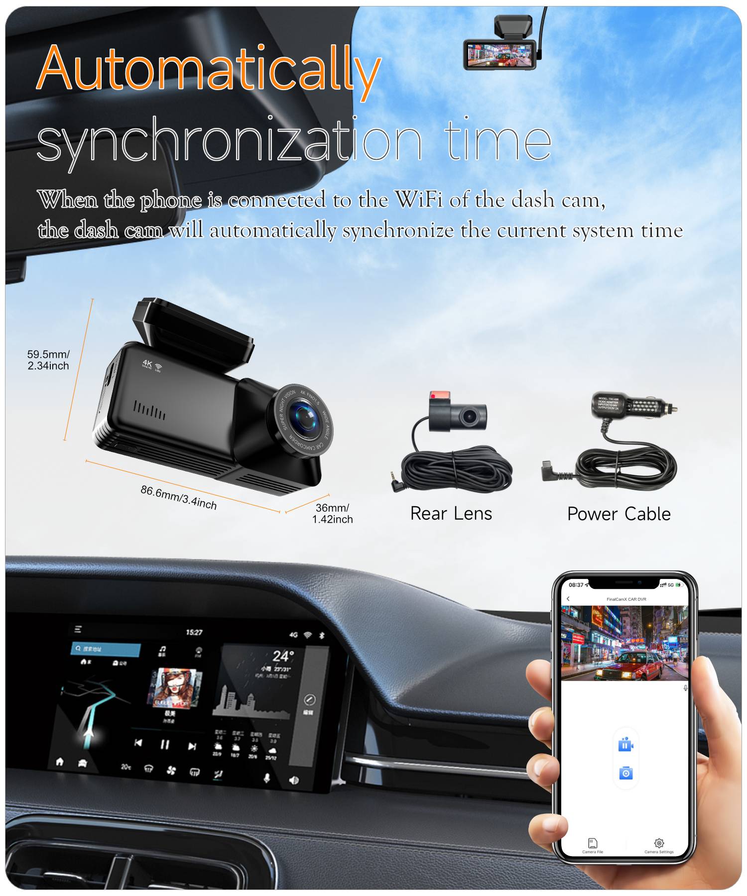 A226E Cross-border 4K Dash Cam with WiFi and Ultra-HD Dual Front & Rear Cameras
