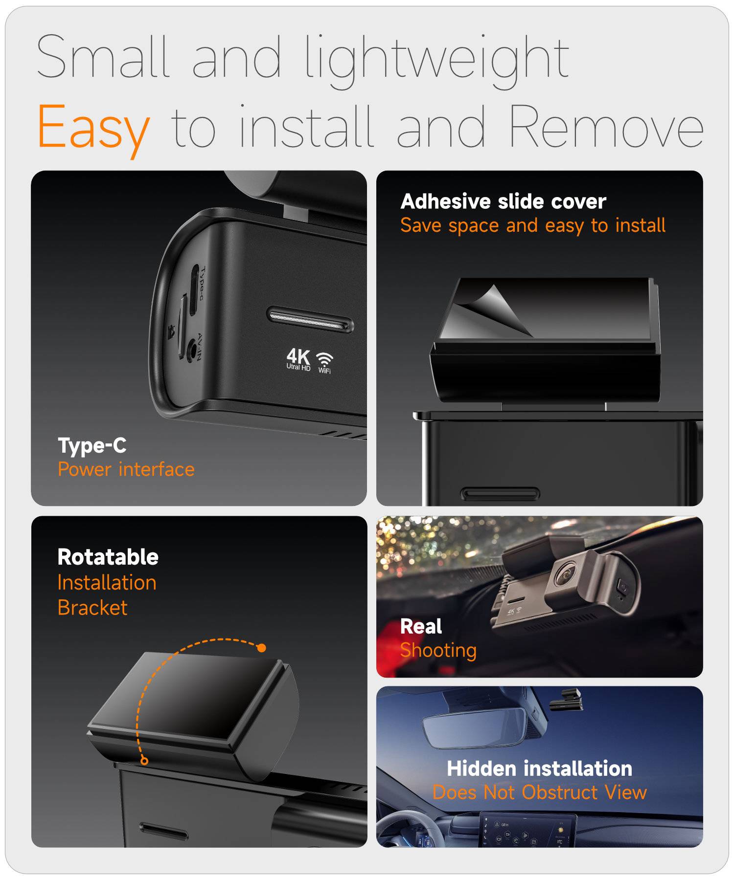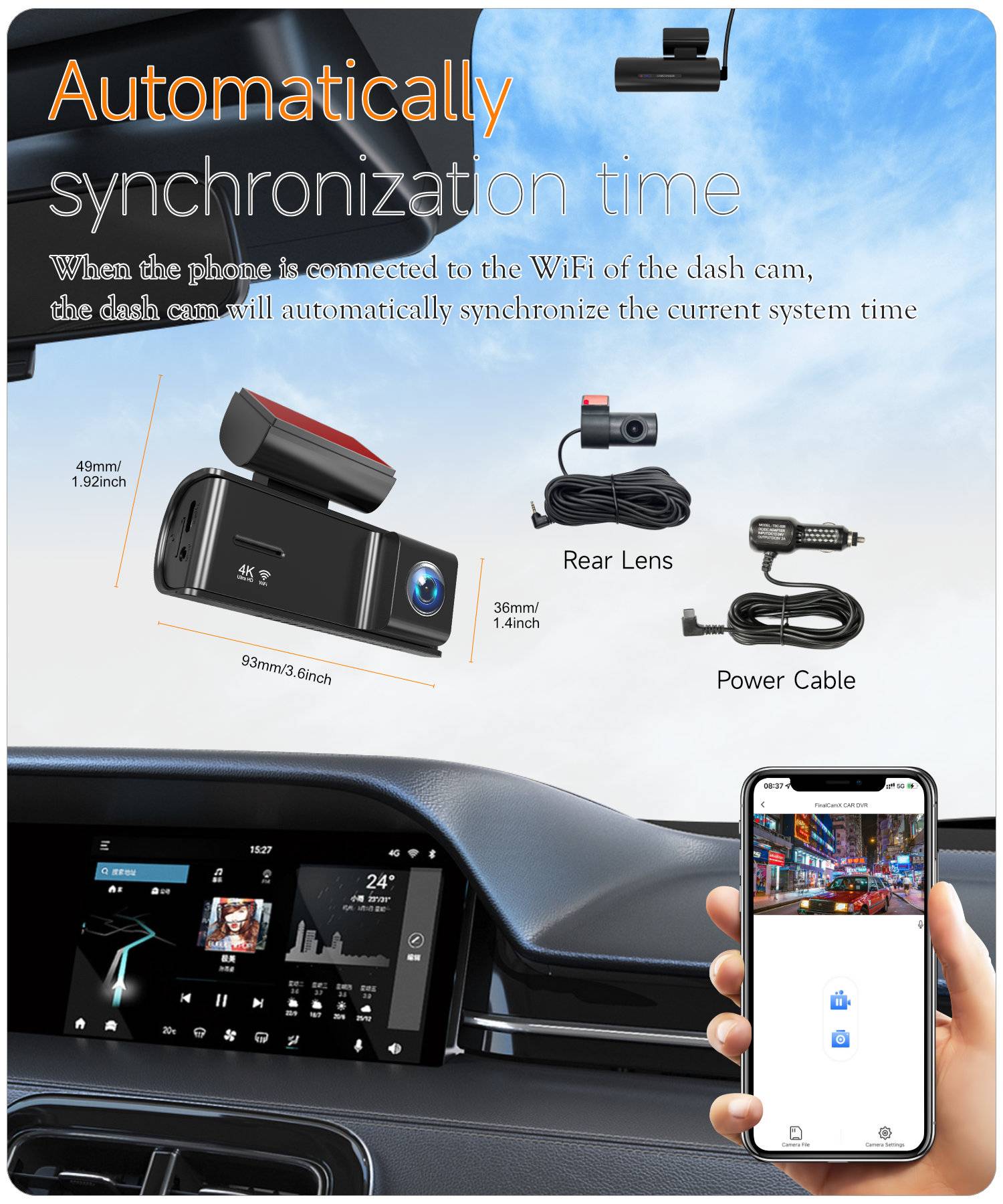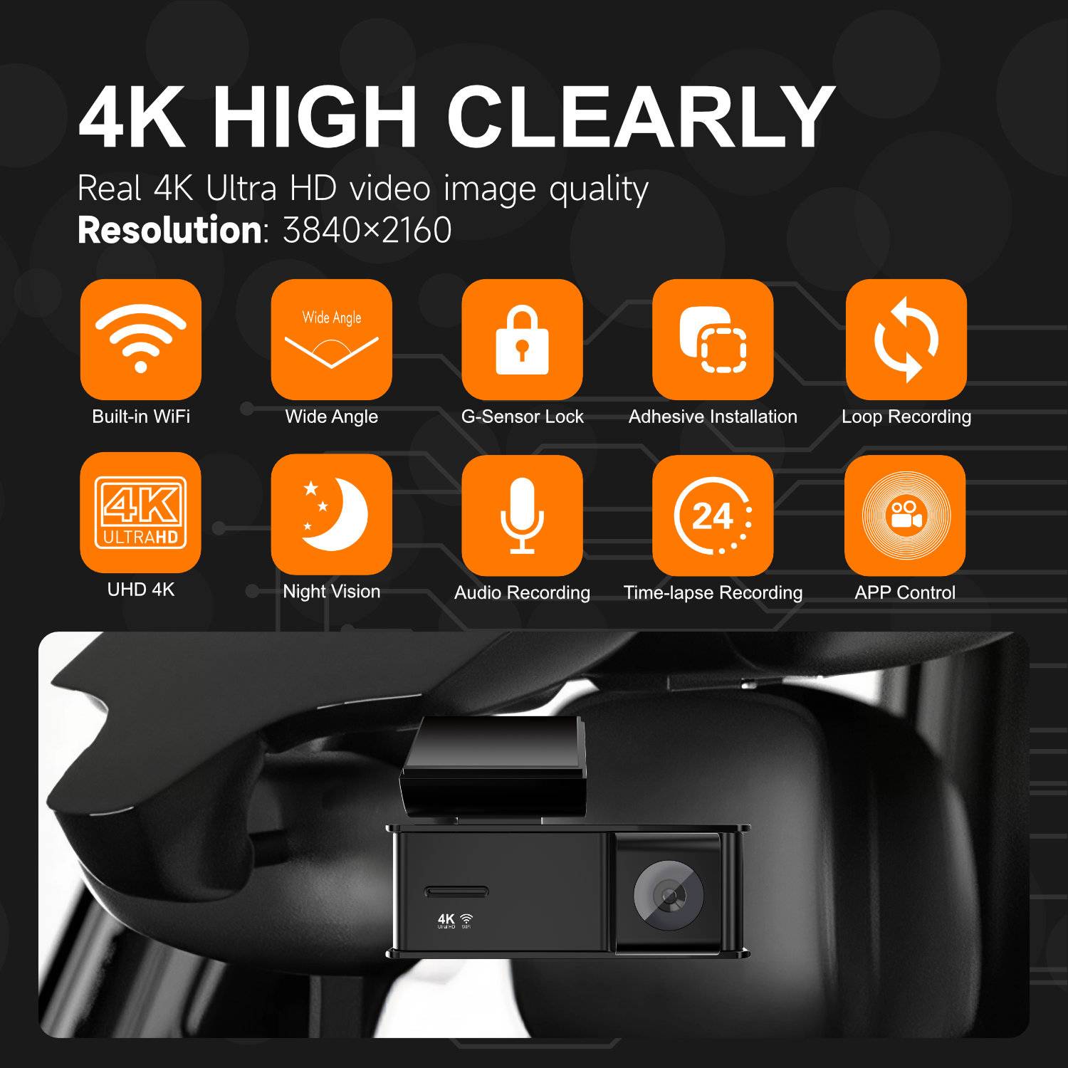 A226E Cross-border 4K Dash Cam with WiFi and Ultra-HD Dual Front & Rear Cameras