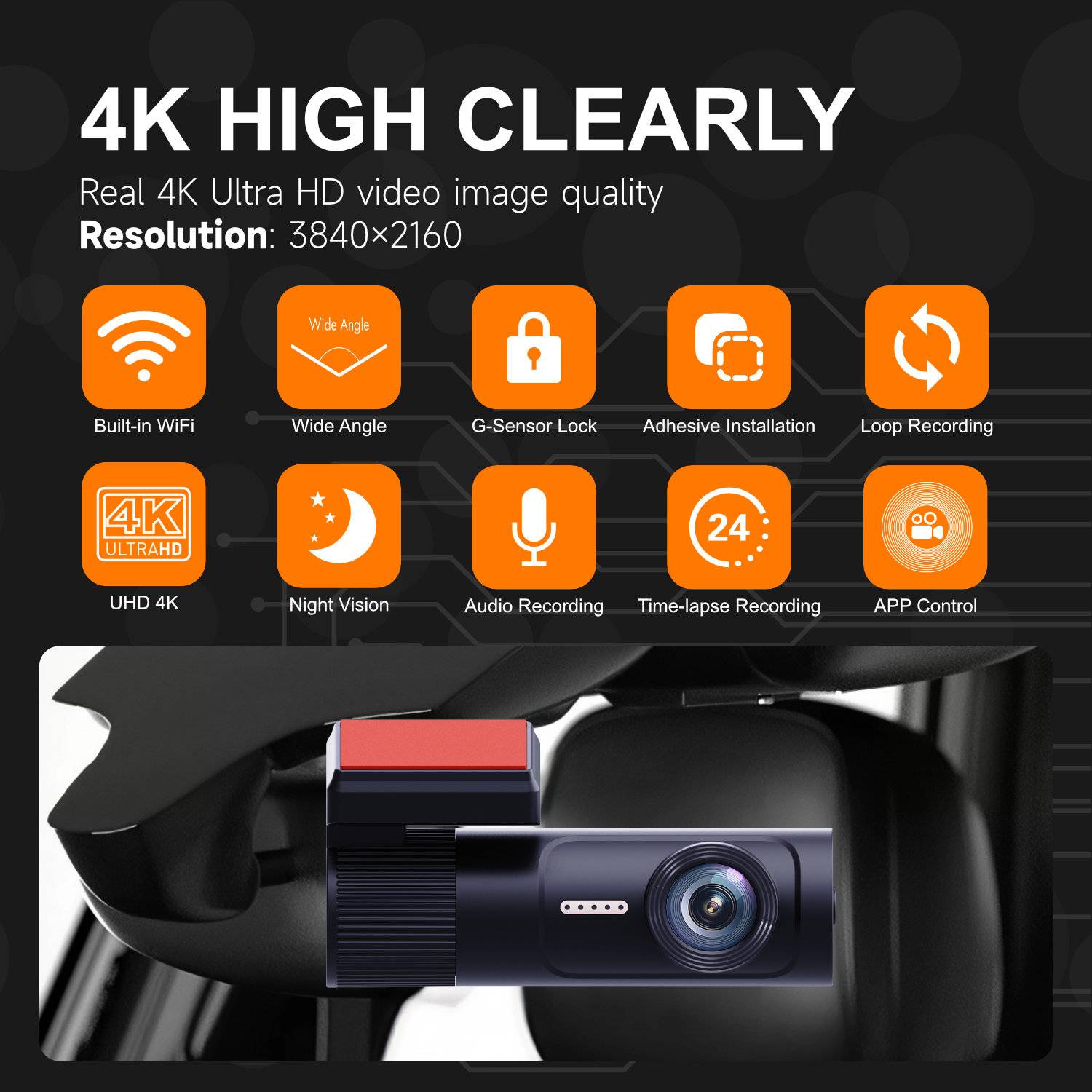 A226E Cross-border 4K Dash Cam with WiFi and Ultra-HD Dual Front & Rear Cameras