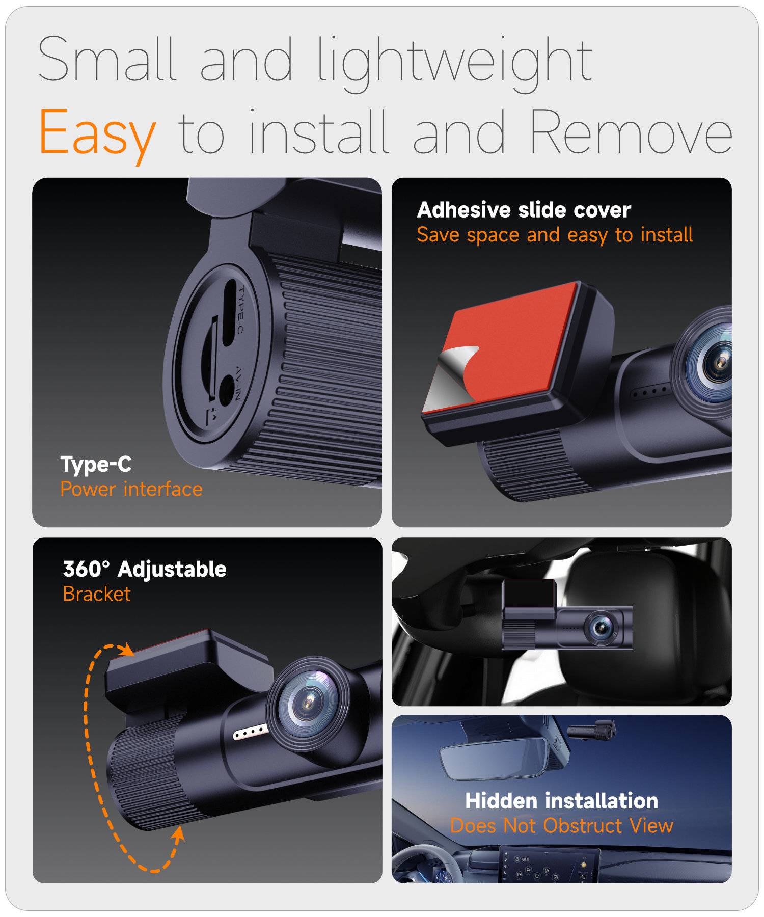A313 Parking Surveillance Dash Cam with HD Night Vision, Wireless WiFi, and Dual Front/Front Cameras