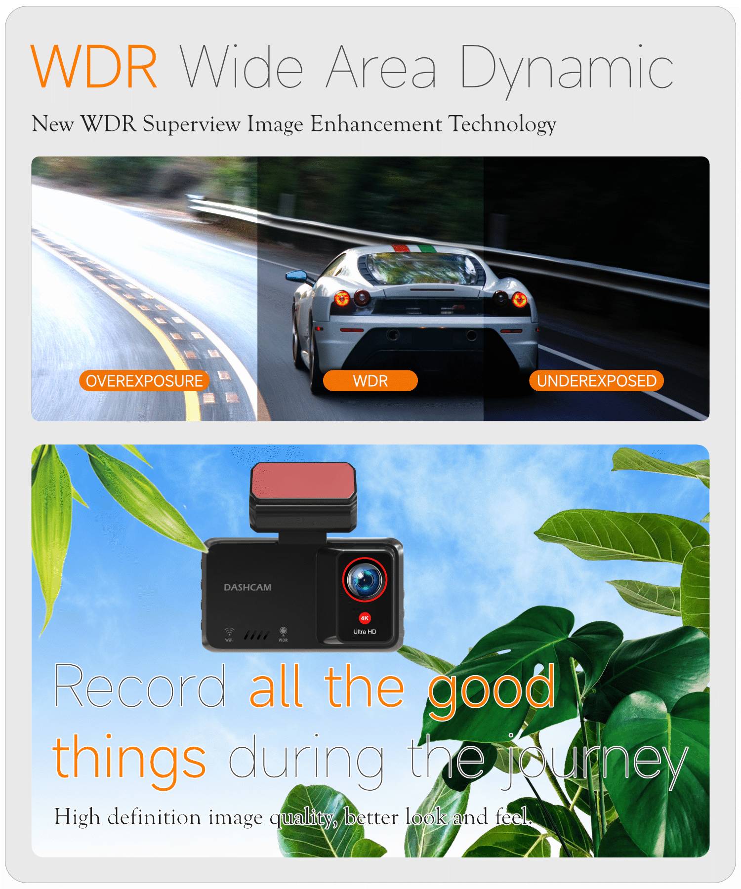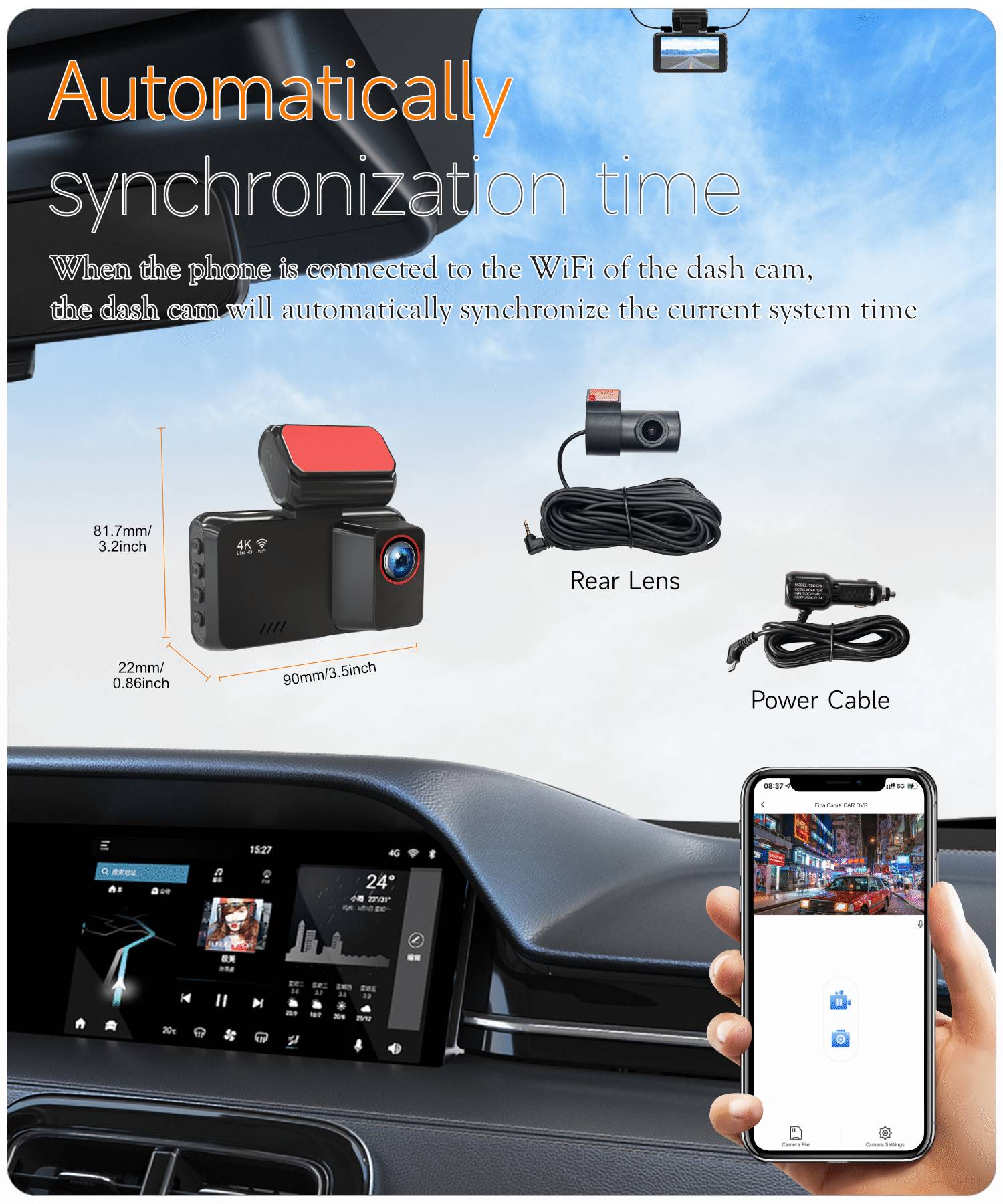 A226E Cross-border 4K Dash Cam with WiFi and Ultra-HD Dual Front & Rear Cameras
