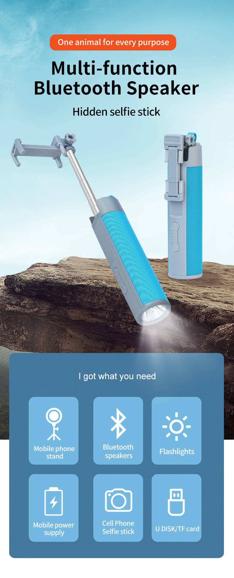 Selfie Stick Bluetooth Speaker