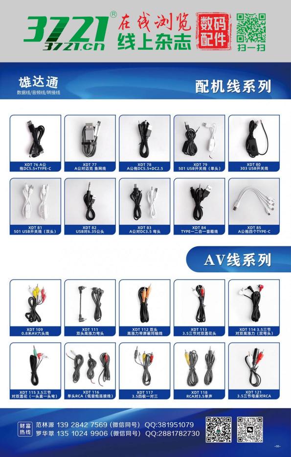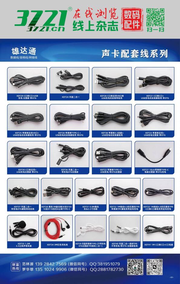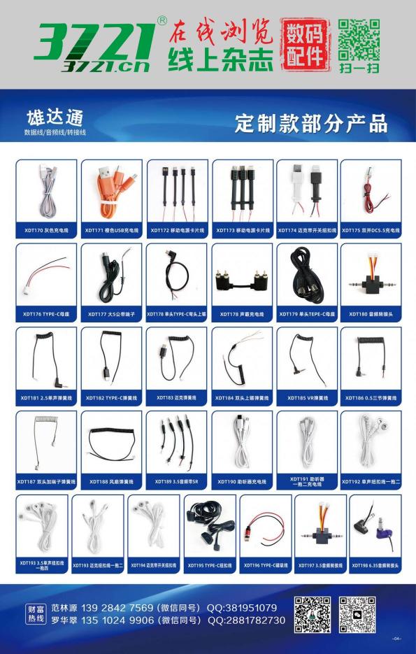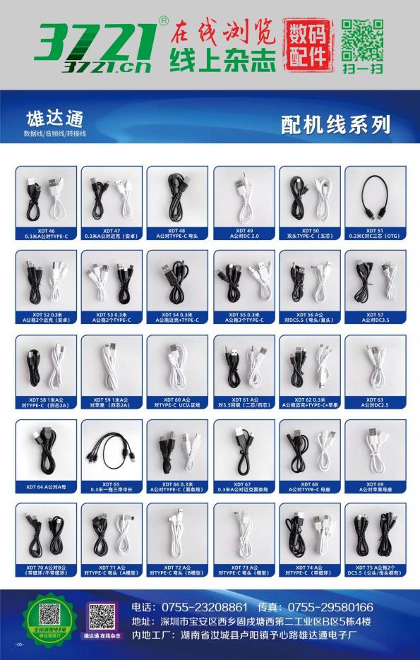公司主营:USB数据线、声卡OTG配套线、无线领夹麦全套线材、麦克风录音线、风扇耳机音箱补水仪充电线、DC线、AV线、3.5音频线、弹簧线,各种转接头等等各种电子产品的线材,实体工厂,价格有优势、质量有保证!